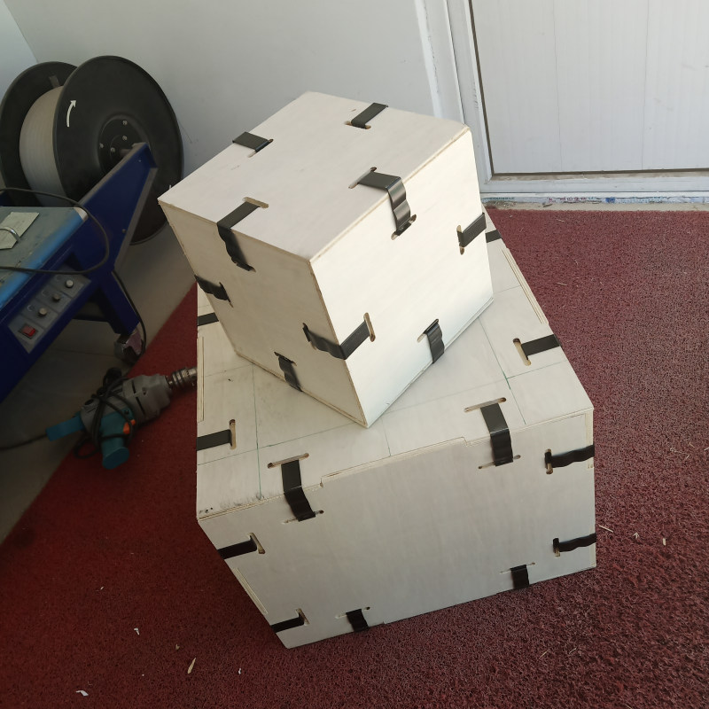 卡扣式木包裝箱全部采用高強度OSB板,箱體由高強度的金屬制件連接而成,其原理是箱體整體受力,無論是組裝還是運輸,都不會出現松動現象,同時避免漏釘、露釘、少釘、工藝粗糙、灰塵、雨淋、結構處理不當、運輸途中箱體碰撞造成的散架等問題;保障了產品的安全性,保證了客戶收貨時的完整性,同時由于是無釘化作業,確保了現場包裝人員的安全。同材質條件下,卡扣箱性能超過傳統木箱。